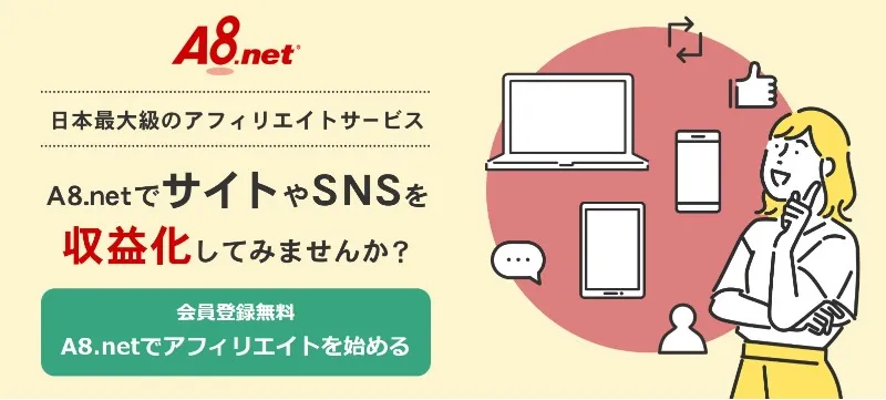 登録必須!A8.net(審査なし・業界トップの最大手)