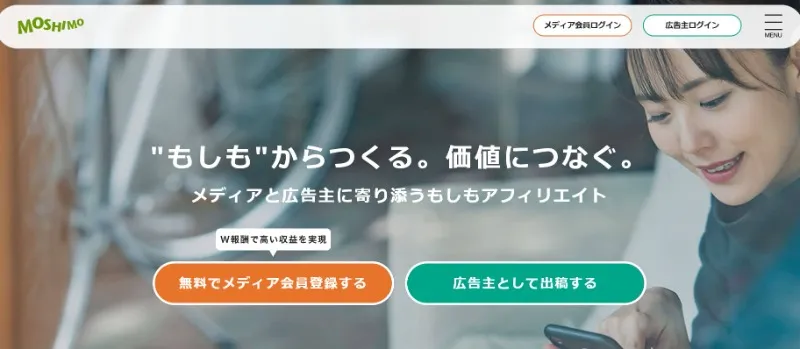 もしもアフィリエイトは、成果報酬に12%の金額が上乗せされる「W報酬制度」があったり、広告掲載オファーが自動で届いたりもします。