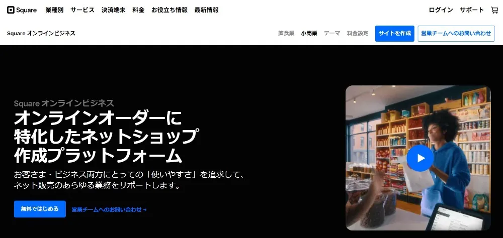 Squareオンラインビジネスは、無料でシンプルなホームページを作れるサービス。