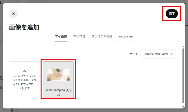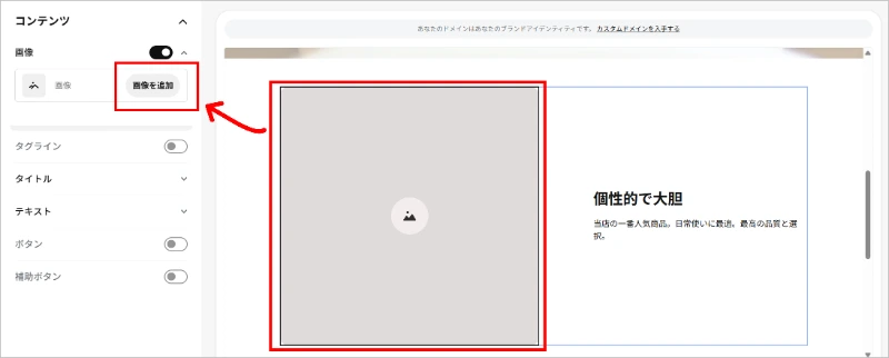 詳しい画像の追加方法は、「4-1 メインビジュアルを変更する」で説明しています。