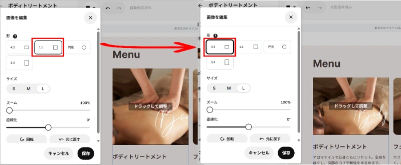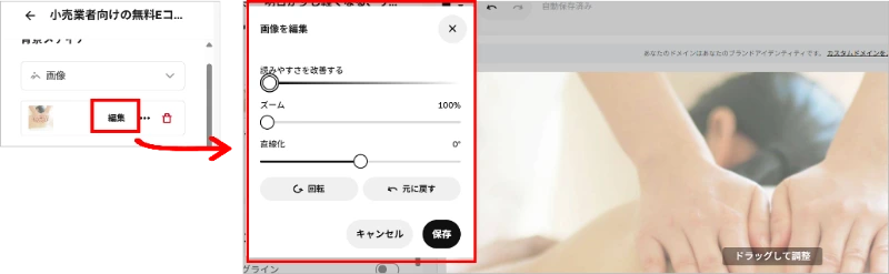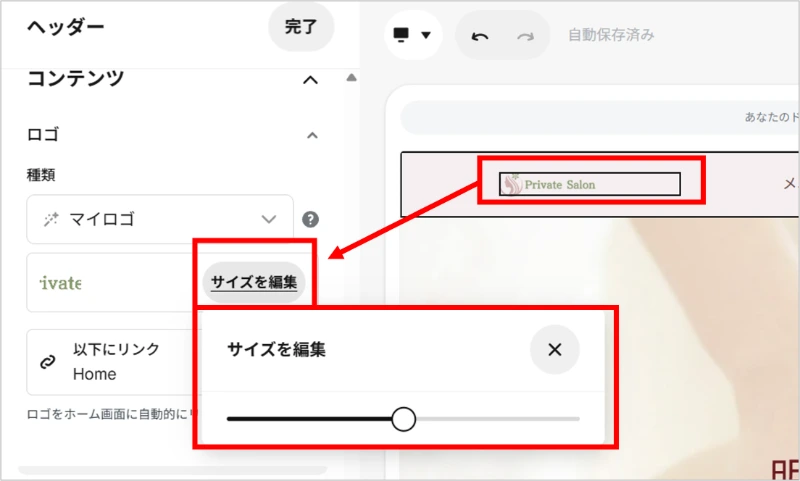 ②追加したロゴ画像は、[サイズを編集]からサイズ調整ができます。