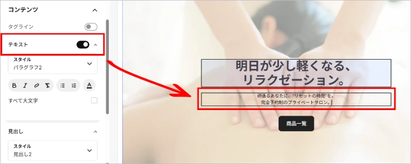 左メニューから[テキスト]をクリックし、お好みの表示スタイルを選択します。