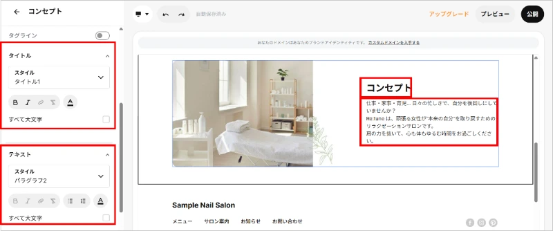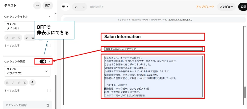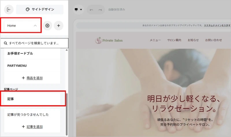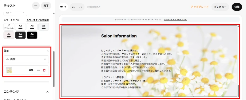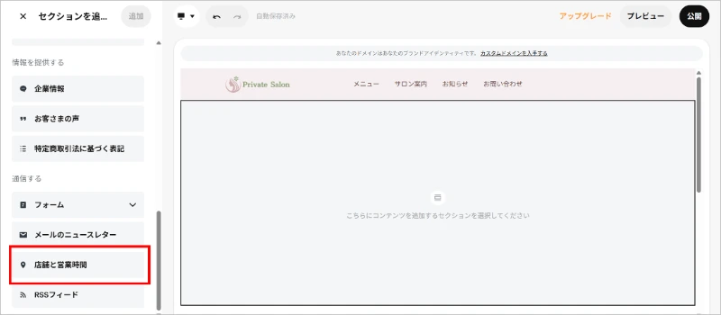 サロン案内ページを表示し、セクションを追加する