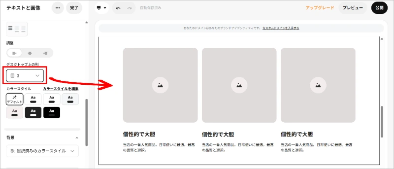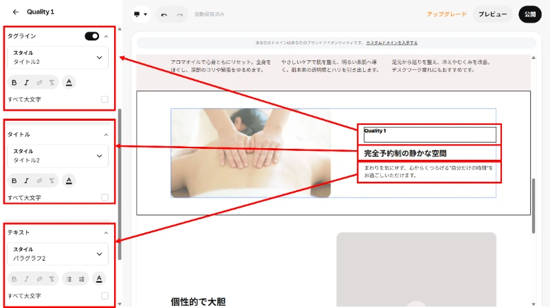2. WordPressほどの自由度はない 文字を好きな位置に配置するといった細かなカスタマイズには限界があります。「シンプルに、効率よく」作るためのツールと割り切ることが大切です。