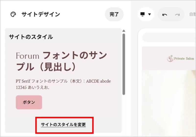 ②サイトのスタイルから[サイトのスタイルを変更]をクリックします。