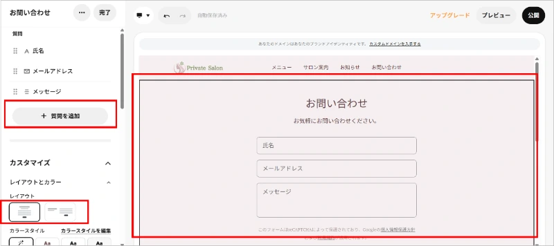 Squareでホームページを作る手順|お問い合わせページ