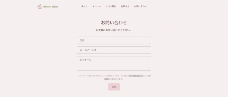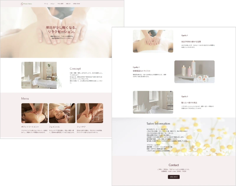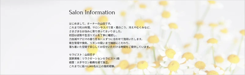 Squareで作成したサンプルのサロン案内ページ