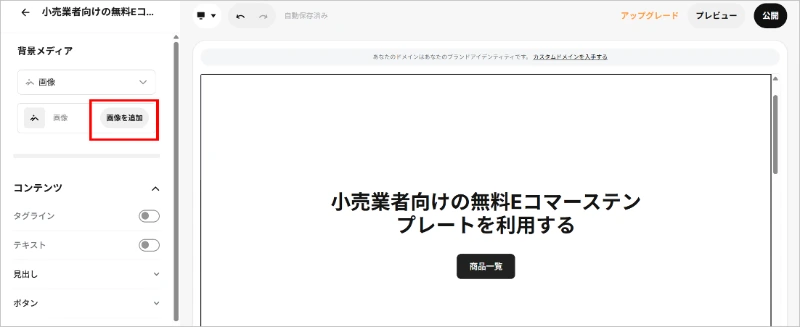 左メニューの[背景]から画像を追加します。