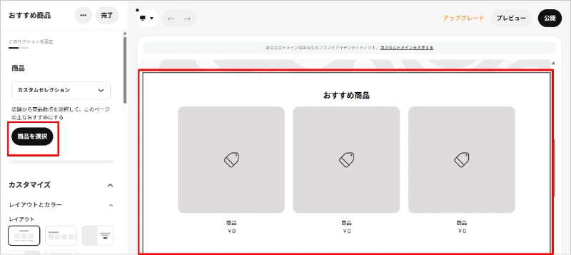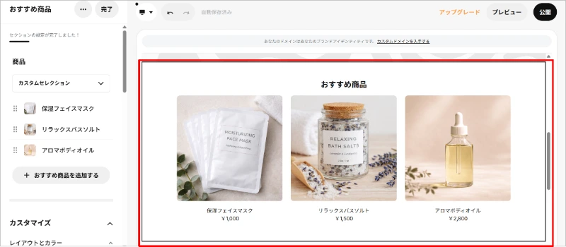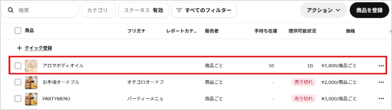 商品登録が終わったら、Squareオンラインビジネスに移動し、おすすめ商品の登録をしてみましょう。