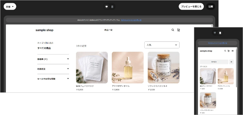 販売ページに商品が表示されるか確認し、必要に応じて見た目を整えて公開します。