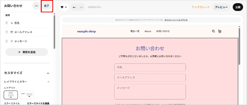 お問い合わせページは、あらかじめ用意されているページを活用します。