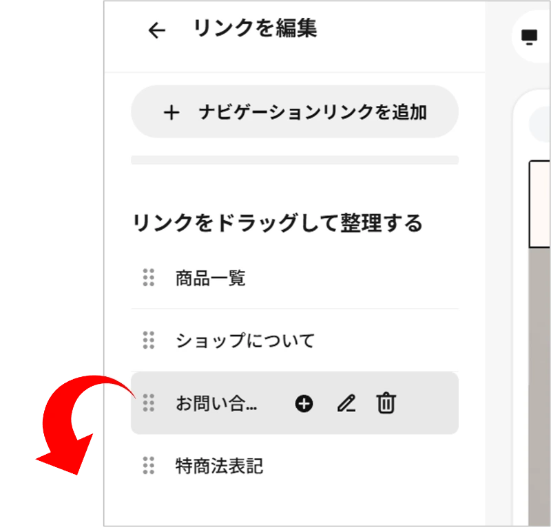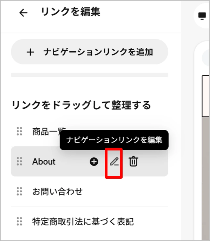 ②ナビゲーションに表示されている名前を変更したいときは、編集したいナビゲーションの「鉛筆マーク(ナビゲーションを編集)」をクリックします。