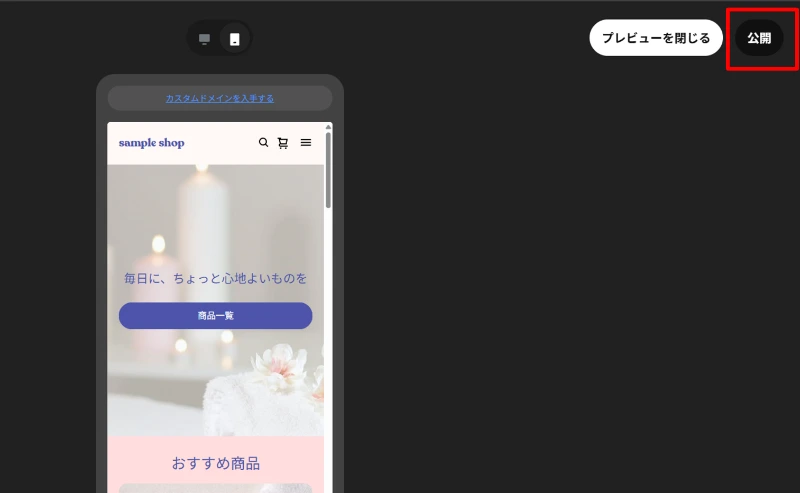 プレビューでパソコンとスマホ、両方の表示を確認し、問題がなければサイトを公開します。