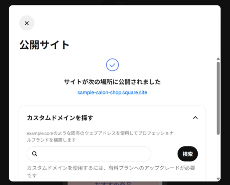 ③[Squareのサブドメインを使う]で無料のドメインを設定したら、[変更]をクリックすると、サイトが公開になります。