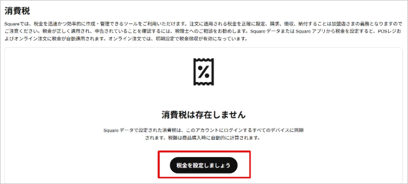 ②消費税ページが表示されたら、[税金を設定しましょう]をクリックします。