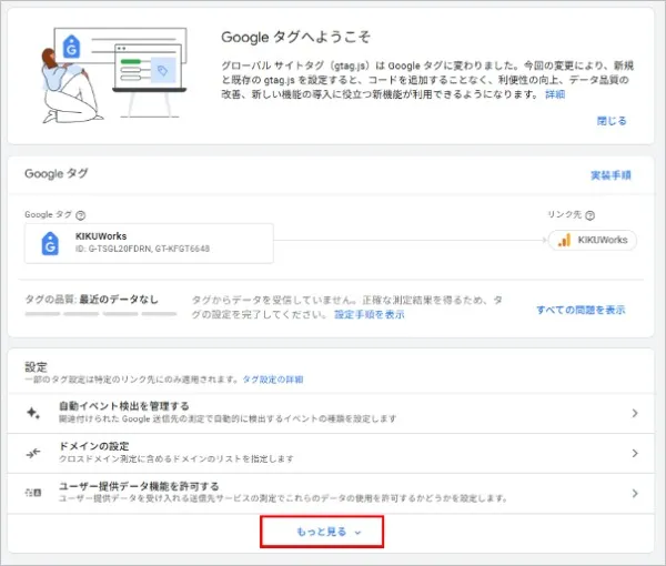 ウェブストリームの詳細画面を下にスクロールし「タグ設定を行う」をクリックします。