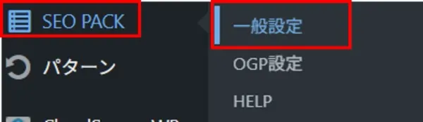 WordPressのダッシュボードで「SEO SIMPLE PACK」→「一般設定」の順にクリックします。
