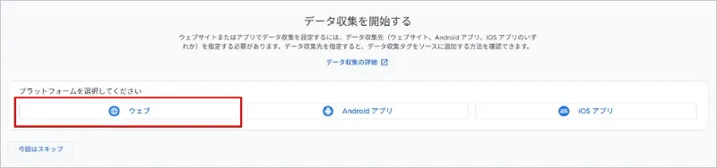 データ収集を開始するが表示されたら、「ウェブ」をクリックします。