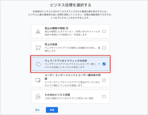 迷ったら、「ウェブ/アプリのトラフィックの分析」だけ選べばOKです。