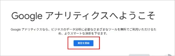 Googleアナリティクスのアカウント作成ページにアクセスし、「さっそく始める」をクリックする