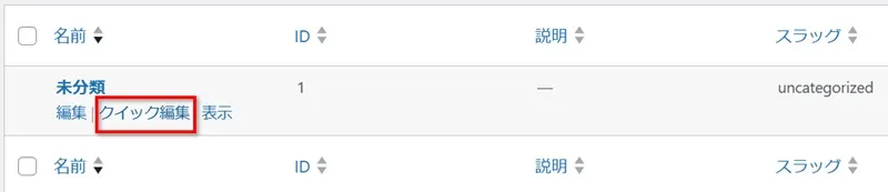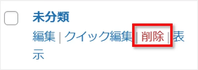 しかし「未分類」には削除ボタンが存在しないため、削除ができない場合があります。