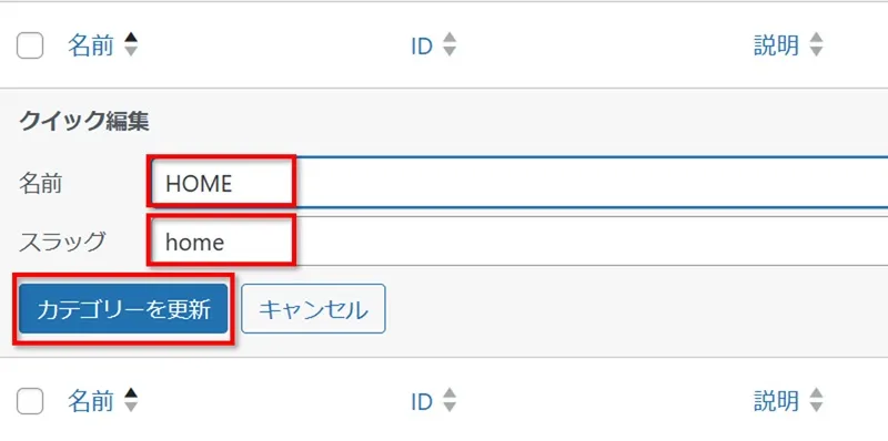 変更後、「カテゴリーを更新」をクリックします。