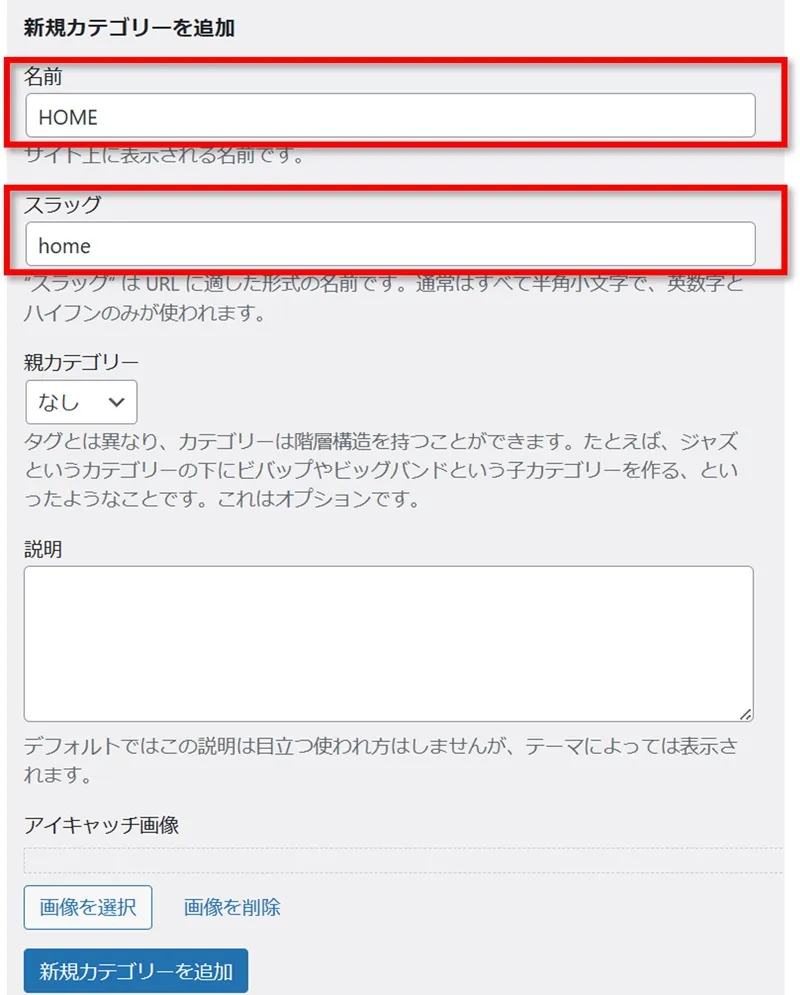スラッグは日本語ではなく「半角英数字」に設定してください。