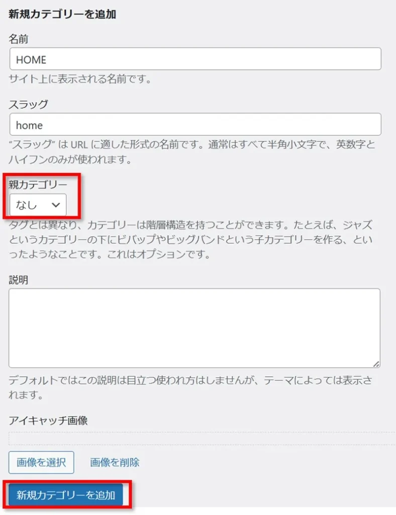 新しくカテゴリーを作成するときは、「新規カテゴリーを追加」から行います。