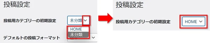 そんな時は、「投稿設定」の「投稿用カテゴリーの初期設定」を変更してから削除をしましょう。