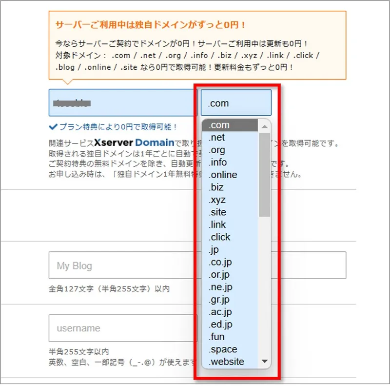 ドメインの最後に表示される部分は好きなものを選んでいいのですが、迷ったら「.com」または「.net」がおすすめです。