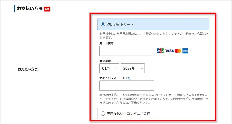 クレジットカード以外にも支払方法はありますが、払い忘れなどのトラブル防止のためにクレジットカードの使用がおすすめです。
