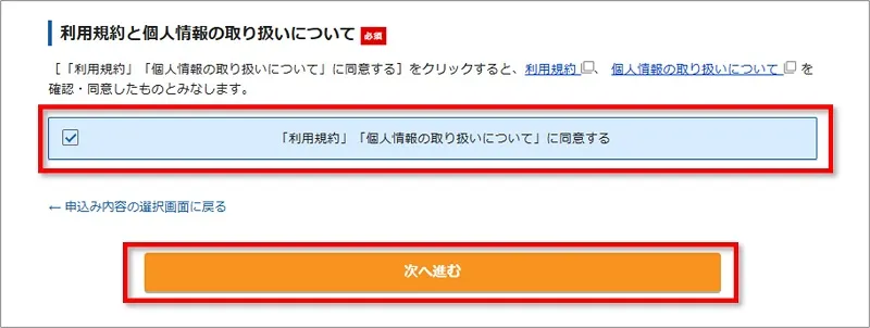 ここから先の操作を完了すると料金の支払いが発生するので、申し込み内容に間違いがないかよくチェックしましょう。