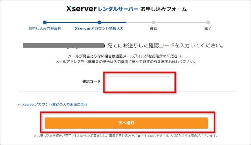 申し込み完了数分以内に「【Xserver】■重要■サーバーアカウント設定完了のお知らせ」という件名のメールが入力したメールアドレスに届きます。