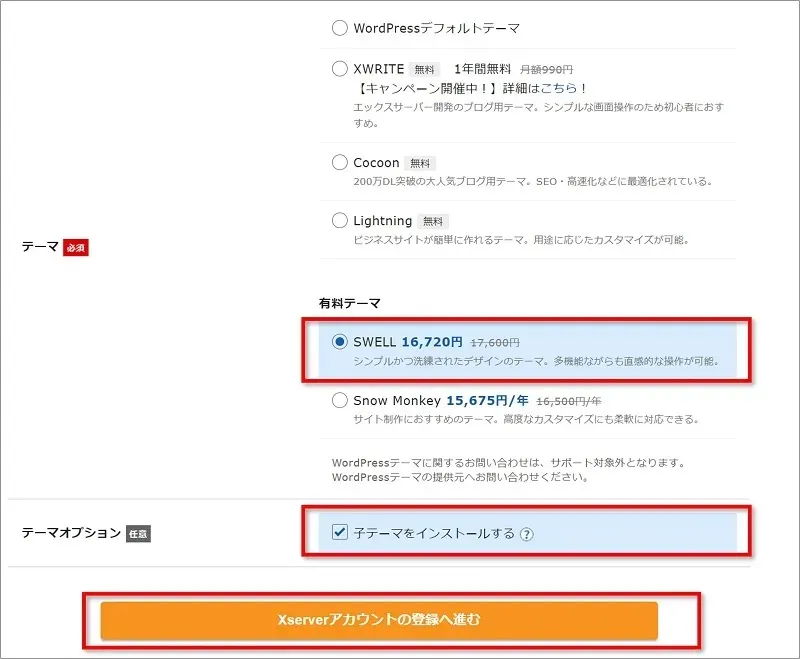 エックスサーバーでは、大人気の有料WordPressテーマ「SWELL」が、定価よりも安い《割引価格》で提供されています。