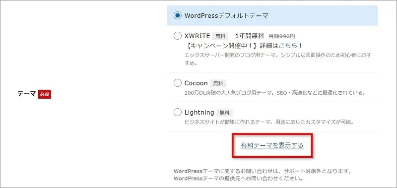 なぜかというと、ここで選んでおけば、後からテーマを購入しWordPressにインストールする手間を省くことができるからです。