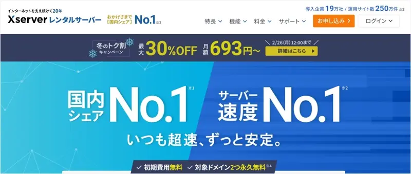 - エックスサーバー:国内シェア№1 のレンタルサーバー