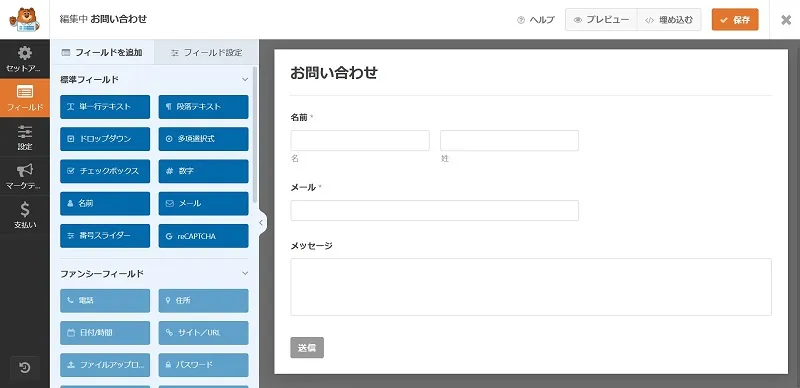 インストールが完了したら、早速お問い合わせフォームを作成していきましょう。