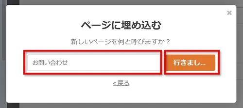 ページ名に「お問い合わせ」と入力し、すぐ右のボタンをクリックします。