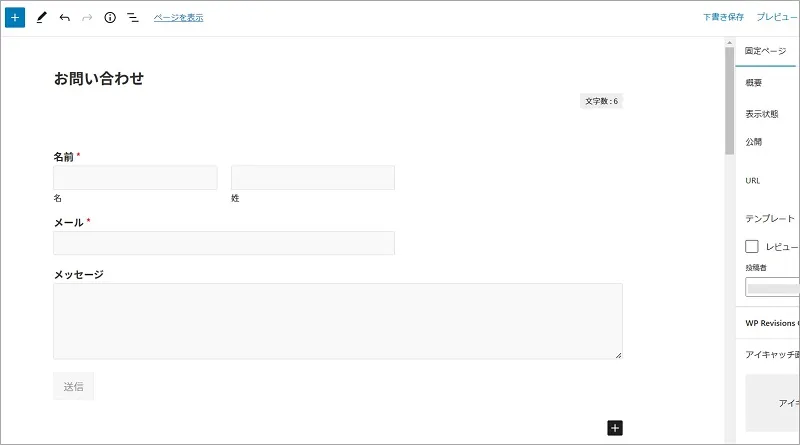 設定が完了したので、お問い合わせフォームを固定ページに設置します。