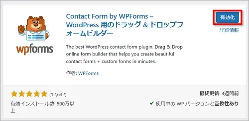 まず最初に、WPFormsをインストールします。