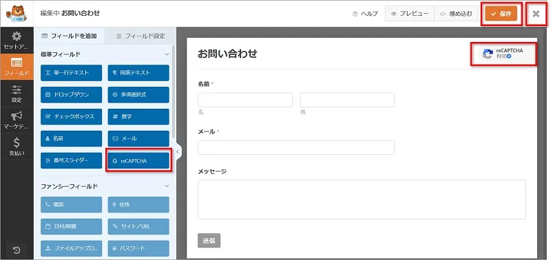 2. WPForms で reCAPTCHA の設定をする