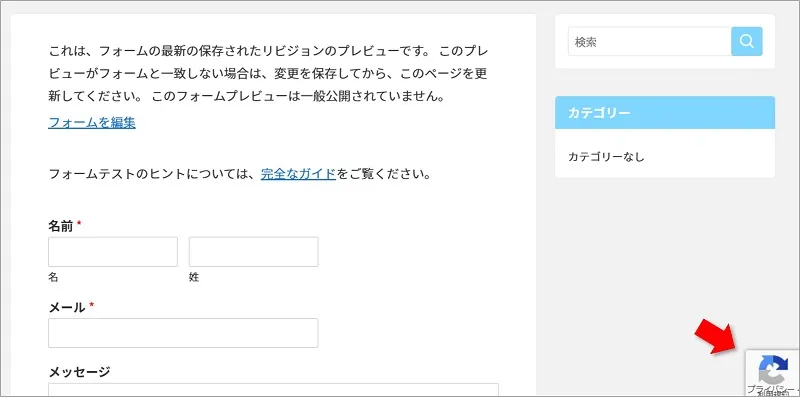 画面の右下に reCAPTCHA のボタンが表示されていれば設定終了です!