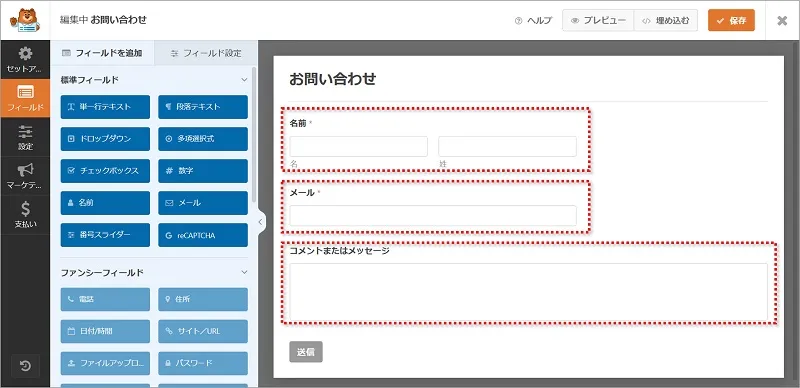 2. お問い合わせ画面の編集をする(フィールドの設定)